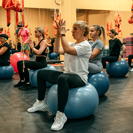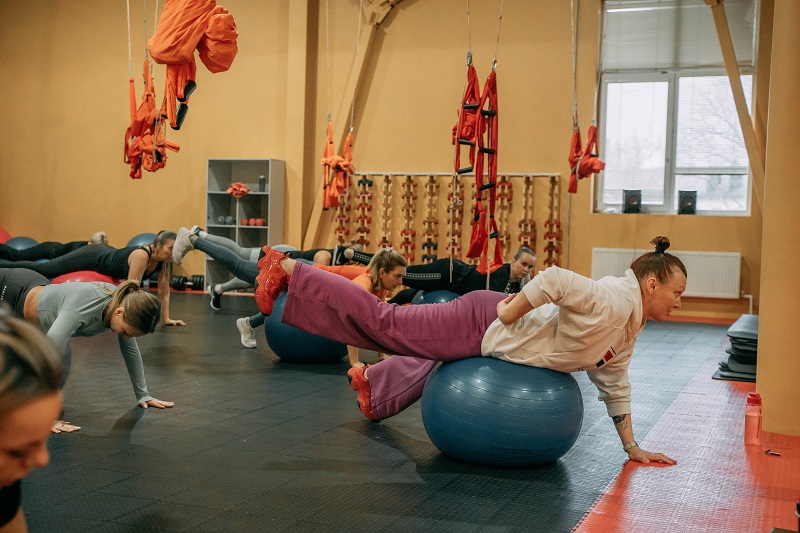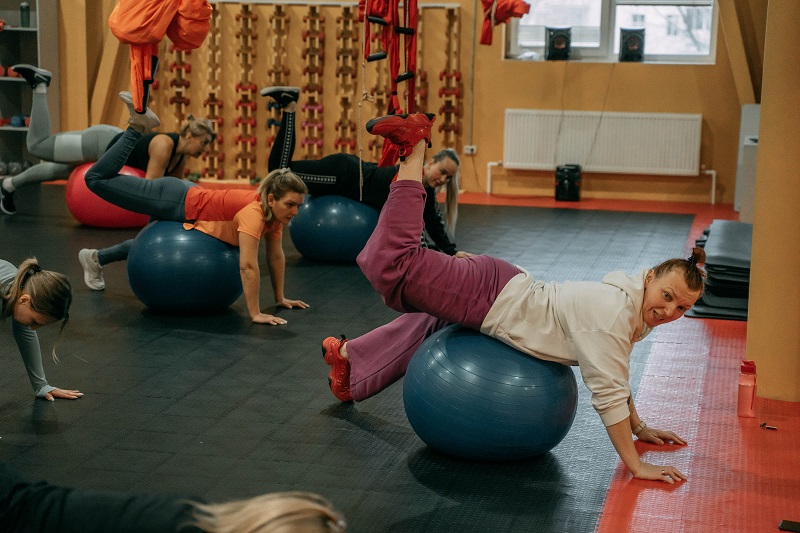 Использование фитбола позволяет убрать нагрузку с ног и опорно-двигательного аппарата, поэтому тренировка идеально подойдёт для людей: