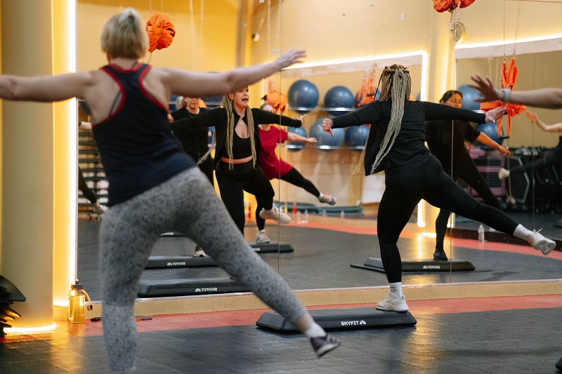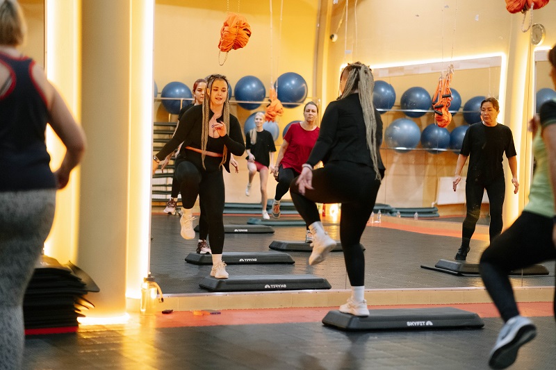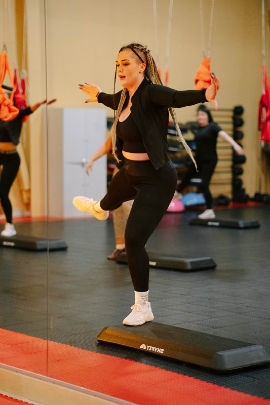Сочетание базовых шагов и танцевальных связок под музыку делает тренировки увлекательными.